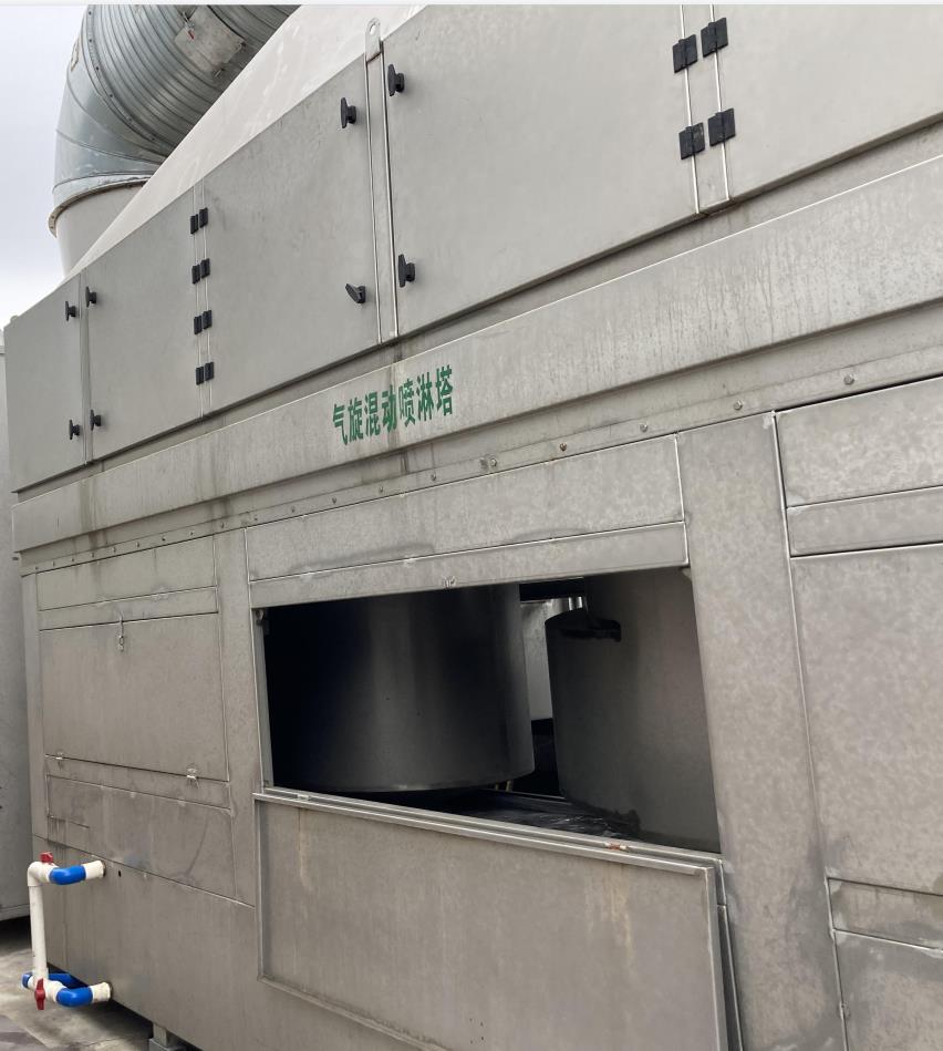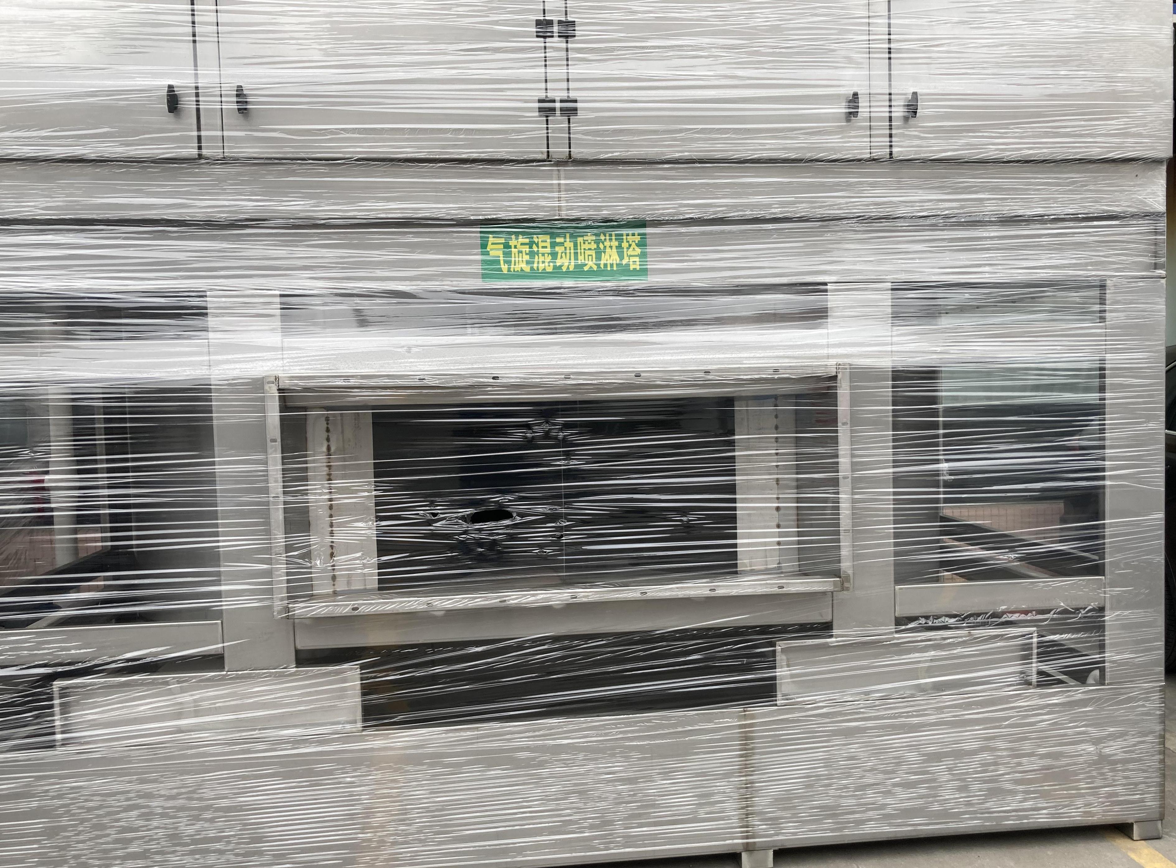 原理簡述:氣旋噴淋塔在離心力作用下,含塵氣體呈橫向向心運動,含塵氣體停留時間更長,洗滌效果更好,徹底改善了噴淋塔在某些特定工況下存在的除塵不徹底、水噴淋塔容易堵塞等技術(shù)缺陷。產(chǎn)品采用專利技術(shù),避免水泵及噴頭的堵塞,大大提高生產(chǎn)效率,其中水池的水可循環(huán)使用,避免產(chǎn)生二次污染造成的困擾,更節(jié)約了水資源。氣旋塔內(nèi)安裝有1個或2個“圓形旋流桶”和高效除霧板。旋流桶內(nèi)放有實心填料球,上層的除霧板用來凈化水霧,達到脫水霧的目的,含塵氣體在塔內(nèi)旋流上升、并在各板上與由塔頂進入的液體旋流接觸,完成除塵任務;通過離心力的作用,廢氣中的大顆粒沉入水池, 由人工撈出清理機殼,這樣氣體得到凈化,同時氣旋塔內(nèi)的水可以繼續(xù)循環(huán)使用。