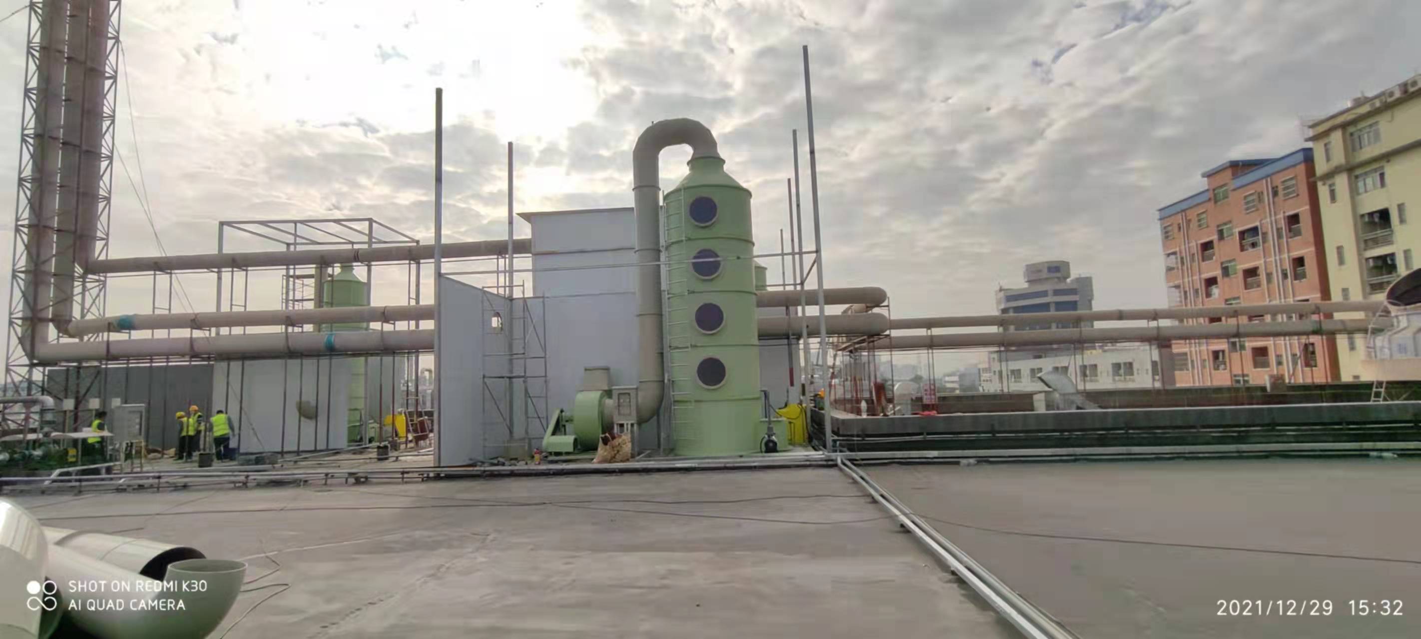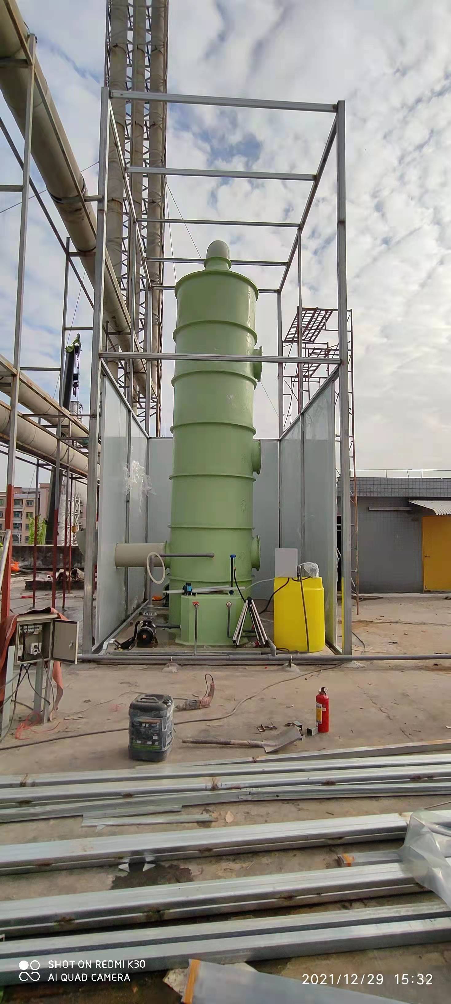 酸堿廢氣處理(噴淋塔)主要的運作方式是不斷酸霧廢氣由風(fēng)管引入凈化塔,經(jīng)過填料層,廢氣與氫氧化鈉吸收液進(jìn)行氣液兩相充分接觸吸收中和反應(yīng),酸霧廢氣經(jīng)過凈化后,再經(jīng)除霧板脫水除霧后由風(fēng)機排入大氣。吸收液在塔底經(jīng)水泵增壓后在塔頂噴淋而下,回流至塔底循環(huán)使用。凈化后的酸霧廢氣達(dá)到全國排放標(biāo)準(zhǔn)的排放要求,低于國家排放標(biāo)準(zhǔn)。